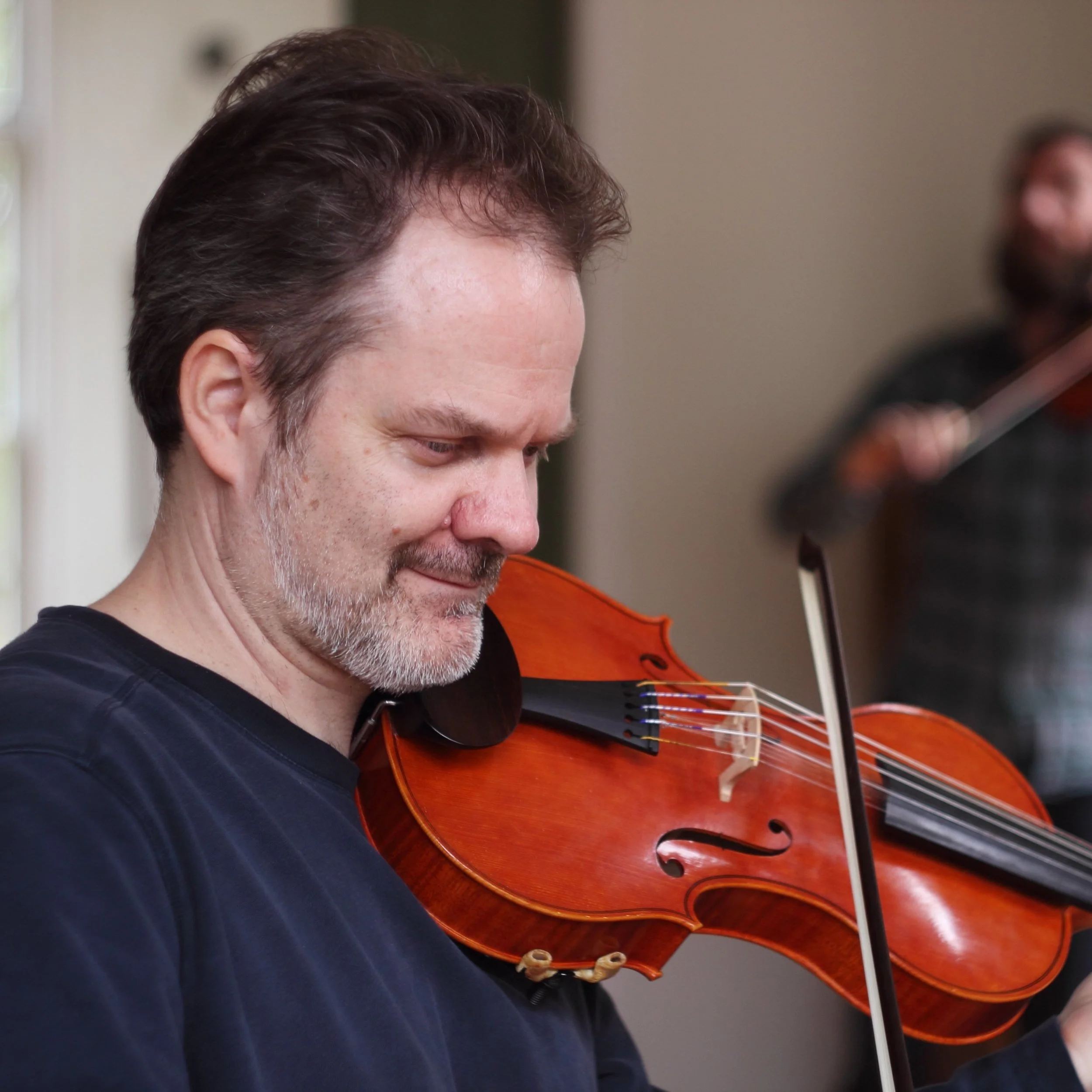Ó Raghallaigh’s work stretches deep into traditional Irish music, both old (his recordings of traditional tunes have consistently been recognized as landmarks) and new (his band The Gloaming plays for audiences in the finest halls around the world), while he also ventures fearlessly into contemporary and improvisatory music. Trueman’s work ranges from traditional Norwegian fiddling through contemporary chamber and orchestral composition to cutting-edge electronic music. While they have collaborated before as a duo, composing for their custom-made Hardanger d’Amore fiddles, this new work presents an opportunity for them to stretch, exploring the range, power, colors, and size of Contemporaneous as a kind of multifaceted duo partner.