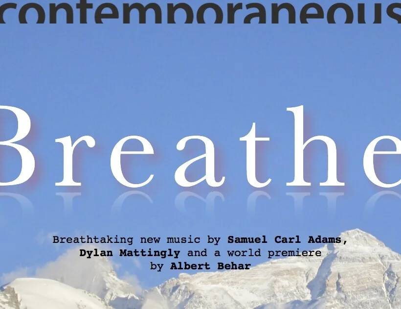 Breathe is an evening of breathtaking new music that follows the contours of our soul, tracing both metaphorically and literally the music of our must common and crucial action. The show features works by three composers under the age of thirty living and working in New York. However, these composers also share roots in the cool fog of the San Francisco Bay Area — a strain evident in all three works.