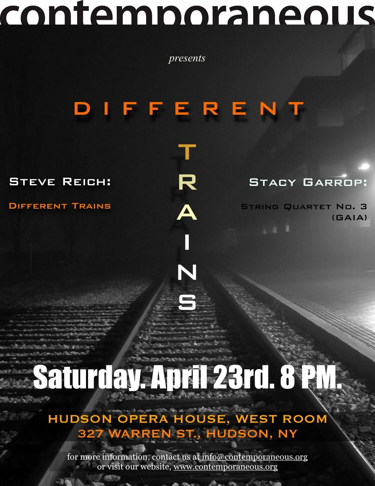 With string quartets by two of the great composers of our time, this program of new music explores creation, humanity, movement, and, of course, trains. Inspired by the myth of the Greek earth goddess Gaia, Stacy Garrop's String Quartet No. 3 is a lively evocation of the creation of the world. Steve Reich's timelessly beautiful work Different Trains questions the very concept of the string quartet. With sounds and spirits of survivors of the Holocaust, the piece is a meaningful meditation on the human soul.