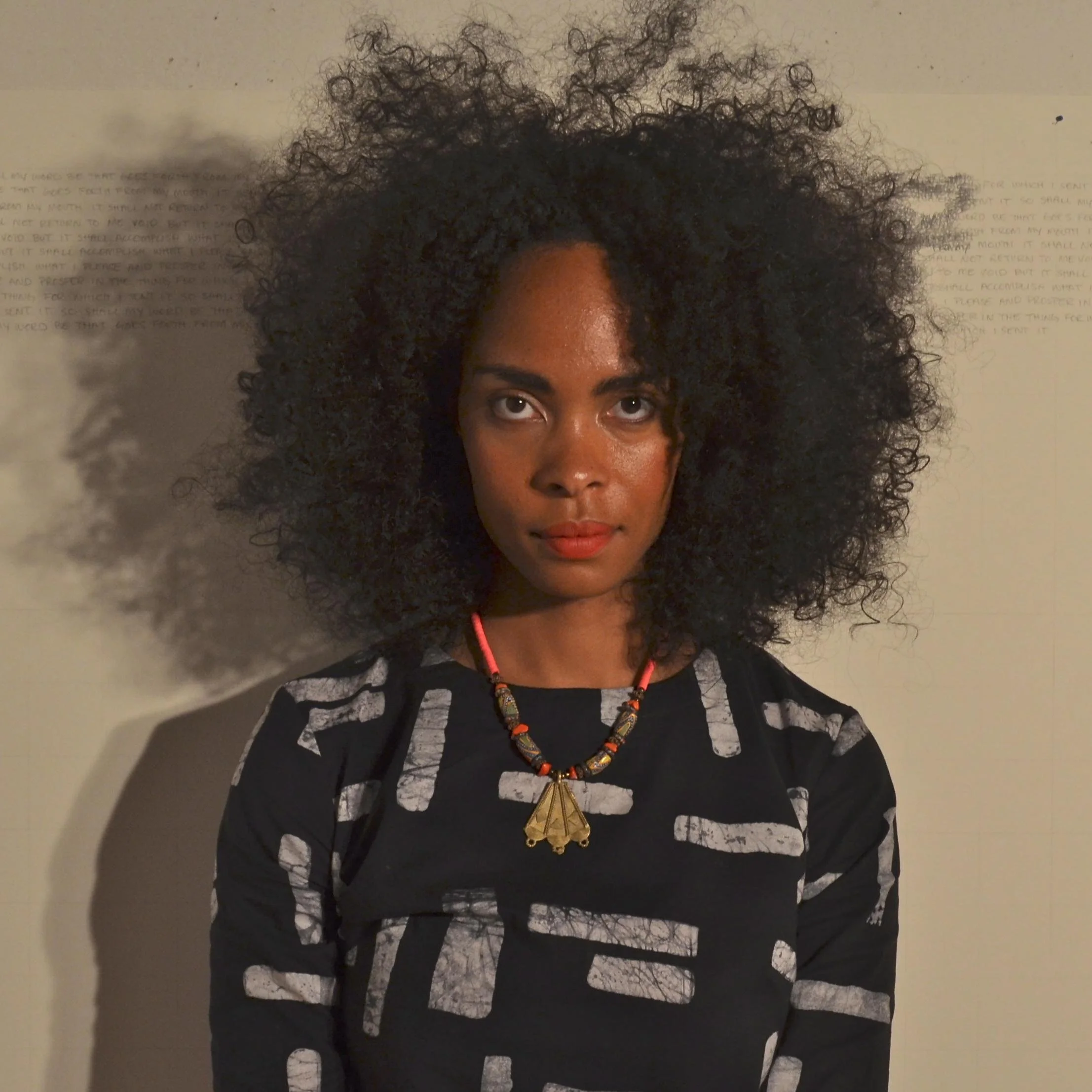 “The core of my work oscillates between portraiture and design, exploring themes related to the body, language and the formation of identity. From rendering a figure by writing a text repetitively to sewing highly individualized uniforms, my work unpacks layers of meaning embedded in how we socialize and perceive one another.”