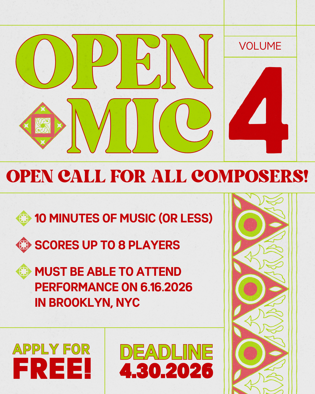 The Open Mic Vol. 4 call will be open until April 30, 2026 (MIDNIGHT)